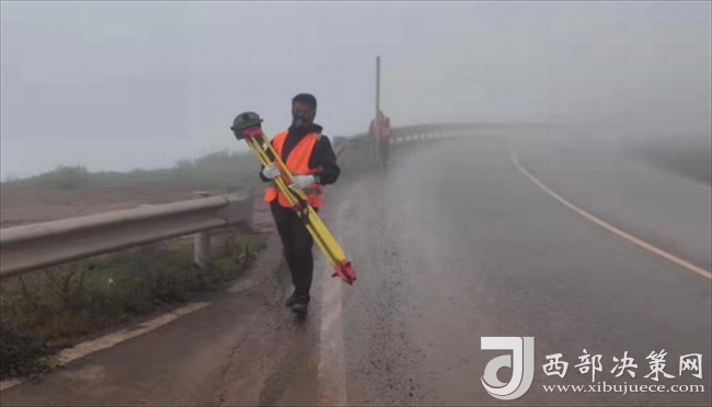 在進(jìn)行二等水準(zhǔn)測(cè)量時(shí),進(jìn)出口聯(lián)測(cè)距離為50千米,不僅要面對(duì)國(guó)道上龐大的車流量,還要面對(duì)盤(pán)山路的大坡度、大霧的低能見(jiàn)度、突然來(lái)襲的雨雪天氣以及雨雪過(guò)后的低溫。二等水準(zhǔn)的測(cè)量方式是步行,因?yàn)槭歉咴泽w力消耗特別大,山里又沒(méi)有吃飯的地方,大家只能靠隨身攜帶的面包、開(kāi)水保證體能。然而即使面對(duì)如此困難的環(huán)境,大家依然不忘初心,按時(shí)完成了復(fù)測(cè)任務(wù)。