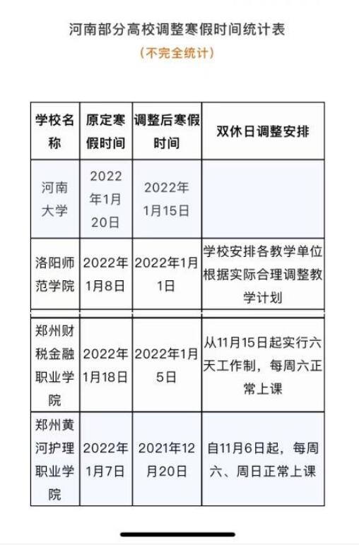 河南部分高校寒假時(shí)間調(diào)整。 截圖取自河南省教育廳微信公眾號(hào)