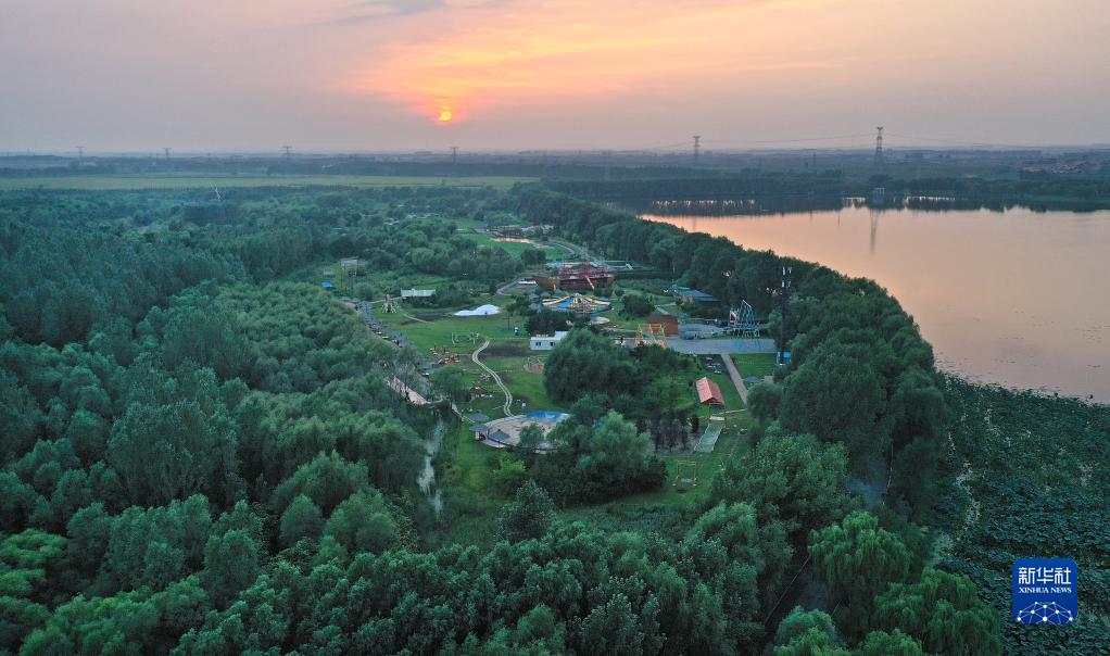 這是遼寧省鐵嶺蓮花湖國家濕地公園(8月23日攝,無人機(jī)照片)?!⌒氯A社記者 姚劍鋒 攝