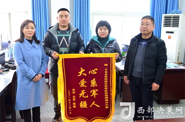 西部決策網(wǎng)訊“我能夠與家人團(tuán)圓,能夠照顧我的妻子和母親,能夠見到剛出生不久的孩子,給你們添了不少麻煩,真的太感謝你們了!”12月1日下午,在四川綿陽某部隊服役回家探親、家住寧強(qiáng)縣漢源街道辦二道河社區(qū)的徐偉與他的妻子及姐姐一同來到縣疫情防控辦,將一面印有“心系軍人 大愛無疆”的錦旗送到工作人員的手中時激動地說,“你們在百忙中能為我們著想,你們是全心全意為人民服務(wù)的好干部……我們制作了一面錦旗略表一下謝意,請收下!”