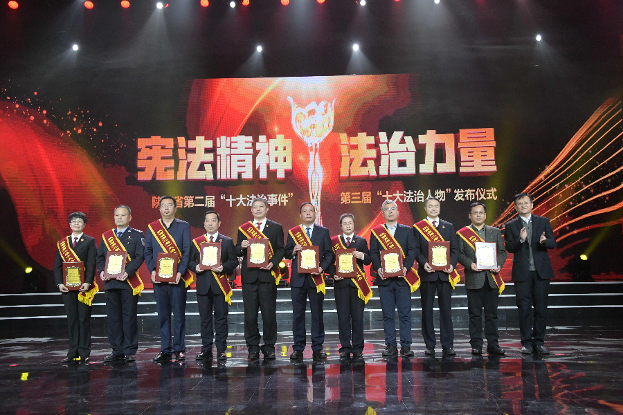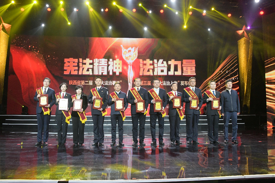 發(fā)布儀式現(xiàn)場播放了“十大法治事件”“十大法治人物”及提名獎的先進事跡短片,揭曉了陜西省第二屆“十大法治事件”、第三屆“十大法治人物”及提名獎獲得者。“全國首創(chuàng)黨委(黨組)書記點評法治工作機制切實夯實‘一把手’履行法治建設(shè)責(zé)任”等10個事件被評為第二屆“十大法治事件”、“陜西出臺自由貿(mào)易試驗區(qū)條例助推自貿(mào)區(qū)高質(zhì)量發(fā)展”等10個事件被評為第二屆“十大法治事件”提名獎,西安交通大學(xué)法學(xué)院二級教授馬治國等10名同志被評為第三屆“十大法治人物”、咸陽市中級人民法院速裁中心主任李春麗等10名同志被評為第三屆“十大法治人物”提名獎。