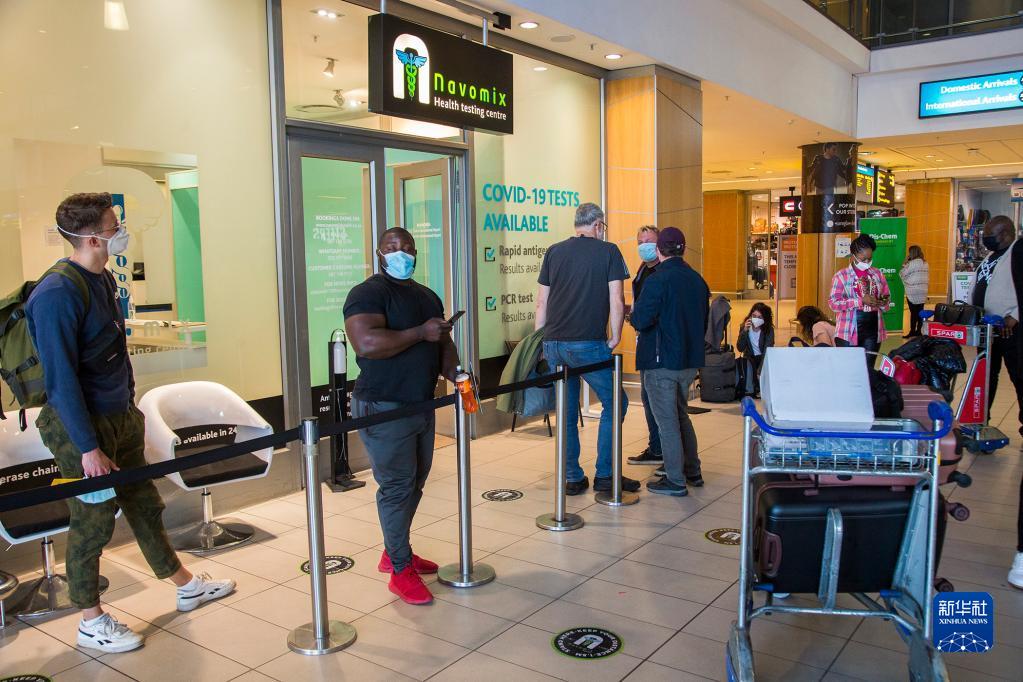 旅客在南非開普敦國際機(jī)場(chǎng)等待接受新冠病毒檢測(cè)(2021年11月29日攝)。為防范新冠變異病毒奧密克戎毒株傳播,多國對(duì)南非等非洲國家的航班和旅客實(shí)施入境限制,并升級(jí)防控措施。新華社發(fā)(弗克攝)