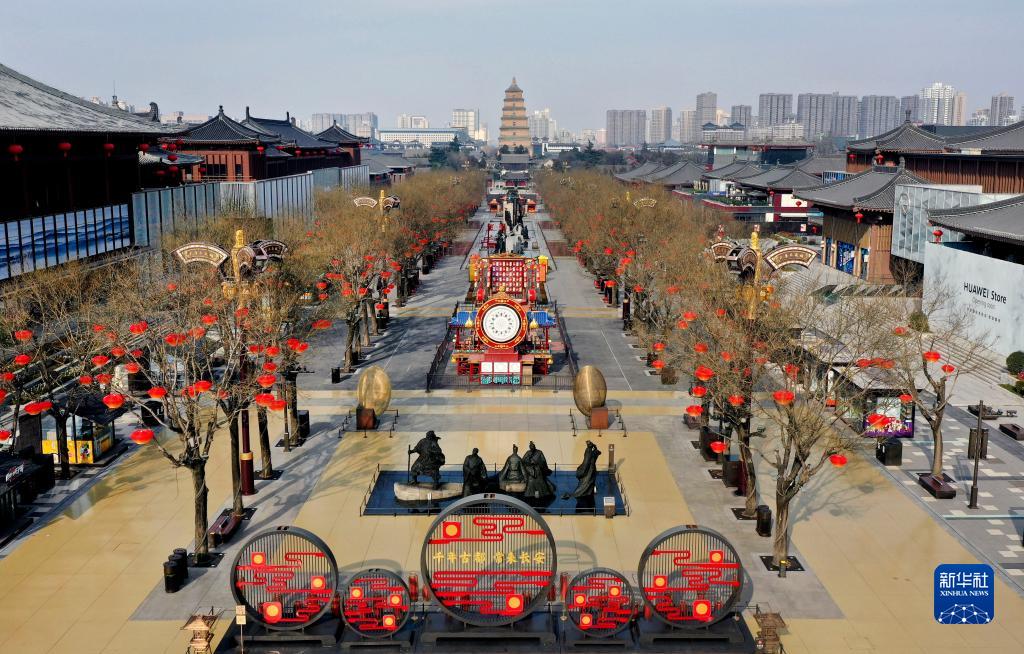 12月28日拍攝的西安市大唐不夜城(無(wú)人機(jī)照片)。新華社記者 陶明 攝