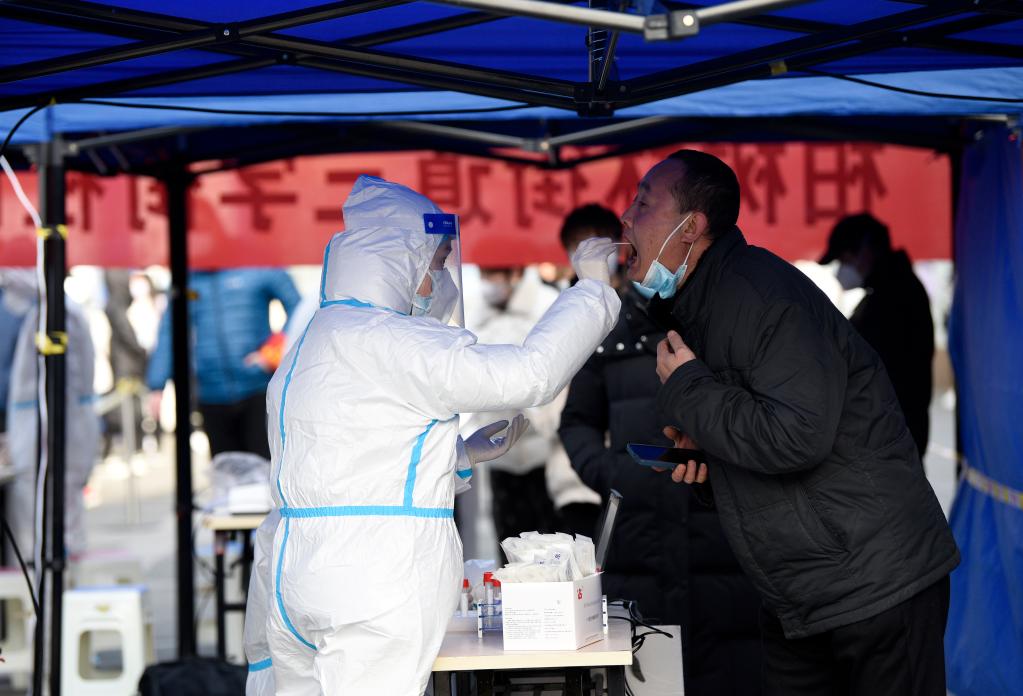 12月17日,市民在西安市碑林區(qū)柏樹(shù)林街道三學(xué)街社區(qū)核酸檢測(cè)點(diǎn)進(jìn)行核酸檢測(cè)。新華社記者 劉瀟 攝