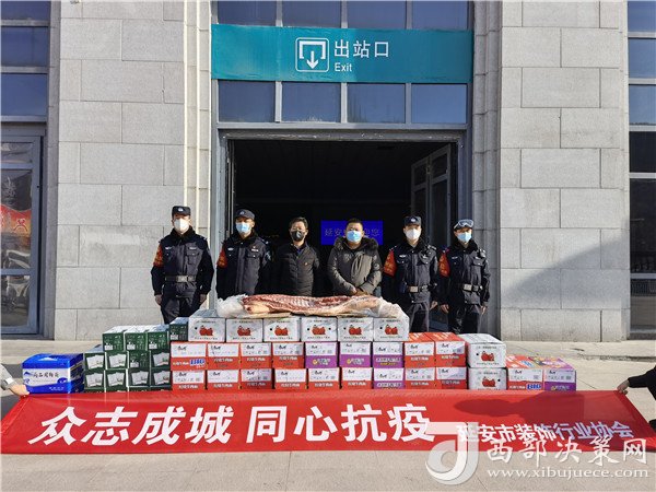 西部決策網(wǎng)訊 疫情擋不住溫情,愛心匯聚戰(zhàn)疫情。1月2日,延安市裝飾行業(yè)協(xié)會(huì)一行來(lái)到延安火車站,向正在執(zhí)勤的民警、輔警送來(lái)豬肉、N95口罩、方便面、牛奶、消毒液等物資,助力一線民警抗擊疫情。