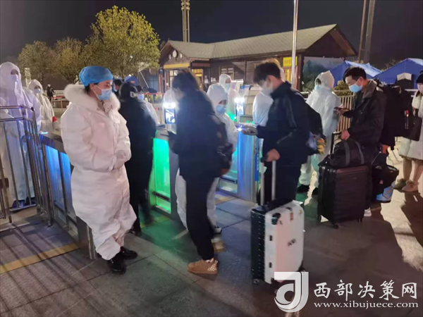 “請出示您的健康碼、行程碼及48小時核酸檢測報告。”在西成高鐵寧強南站值守的黨員對出站的乘客親切地說道。