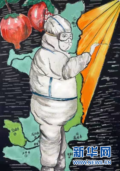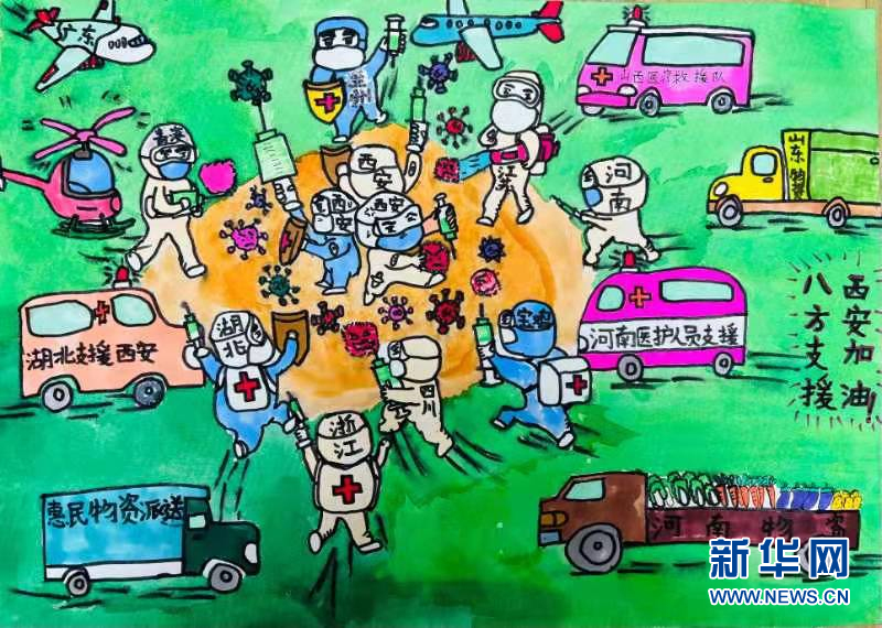 1月2日,西安市鄠邑區(qū)甘亭中心學(xué)校的孩子們用最自己的方式宣傳居家防疫知識(shí),用手中的畫筆表達(dá)他們對(duì)抗疫英雄的贊美,為抗疫一線的英雄加油!為西安加油?。◤埶妓?趙影超 王展榮)