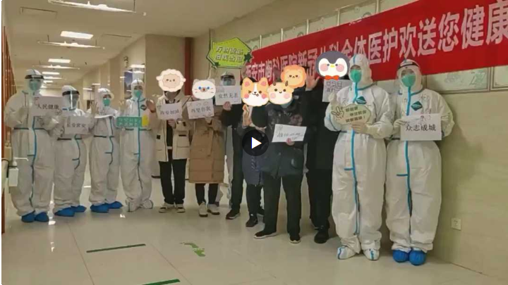 患者小呂與“大白”們一一招手道別。她馬上就要由西安胸科醫(yī)院轉(zhuǎn)出接受健康監(jiān)測、康復(fù)隔離。“大白加油,謝謝你們守護(hù)我們。”小呂在紙上寫下臨別贈語,這是每一位出院患者的“道別儀式”。