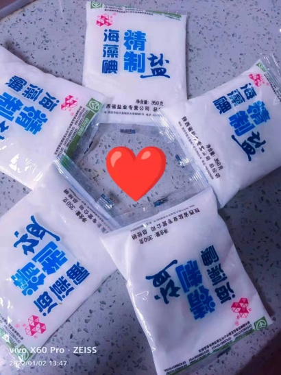 在這一天的上午,小區(qū)突然收到一堆食用鹽,10多袋整齊地碼成了一堵墻,在陽光下顯得是那么的耀眼,居民們都爬在自家窗戶上往下探望著、猜測著這又會(huì)是什么驚喜大禮包。