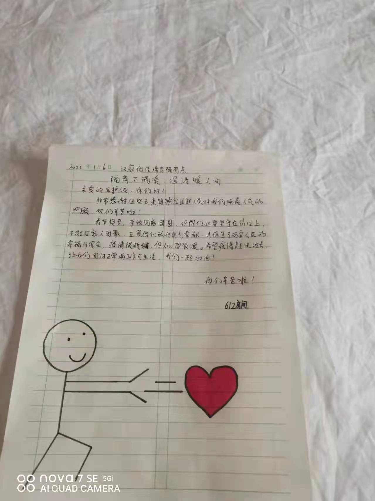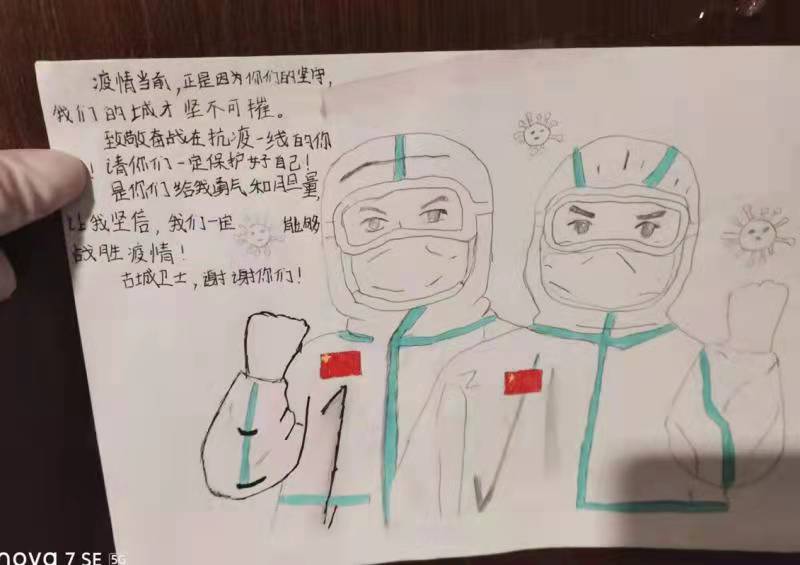 一幅幅手抄報(bào),一封封感謝信,一條條群留言,都在記錄著一個(gè)個(gè)勇毅且溫情的抗疫瞬間。“今天是我被隔離的最后一天,收拾好書(shū)包和小行李箱,準(zhǔn)備回家了,看著剩余的水果、零食,此刻心里不止是歡喜和激動(dòng),還有一絲不舍……”一名小學(xué)生在感謝信中寫到:“接到老師的通知,我們要集體隔離,內(nèi)心還有點(diǎn)害怕,不知該怎么辦,來(lái)到酒店后,看到張張和藹可親的臉,我的心放下了,你們?yōu)槲覀儾珊怂?、送飯菜,讓我感到溫暖,感謝強(qiáng)大的祖國(guó),我們一定好好學(xué)習(xí),長(zhǎng)大做一個(gè)對(duì)社會(huì)有用的人”。據(jù)介紹,隔離期間,有四名12歲的學(xué)生是獨(dú)自隔離,沒(méi)有家人的陪護(hù),在工作人員每天的問(wèn)候中,他們懂事有禮貌,只要求工作人員幫他們打印作業(yè),每天在房間堅(jiān)持看書(shū)學(xué)習(xí)。
