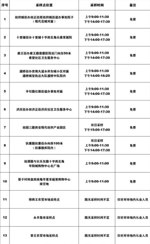 結合當前疫情防控總體形勢,為進一步做好復工復產和社會保供等方面保障工作,我市這些區(qū)域設置核酸檢測采樣點位,滿足市民需求。