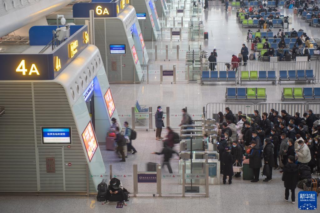 1月17日,杭州東站候車旅客在檢票進(jìn)站。新華社記者 江漢 攝