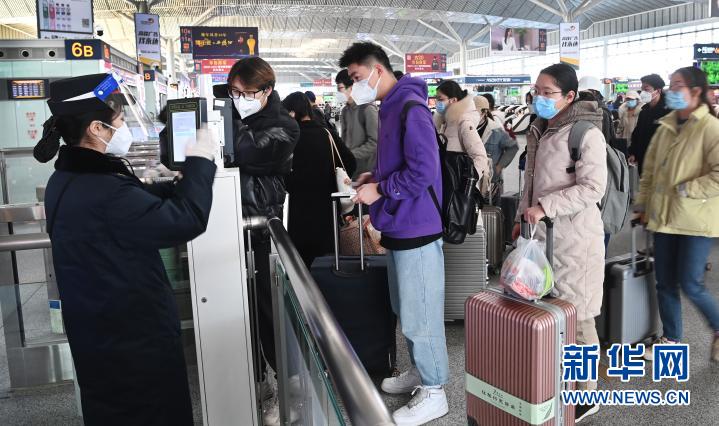 1月16日,西安北客站,離校返鄉(xiāng)的西安高校學(xué)生在排隊進(jìn)站。新華社記者 陶明 攝