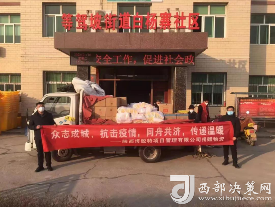 西部決策網(wǎng)訊 西安疫情形勢嚴(yán)峻復(fù)雜,牽動著無數(shù)人的心。1月18日下午,陜西博銳特項目管理有限公司為西安市雁塔區(qū)城市發(fā)展投資控股集團(tuán)有限公司捐贈600多份生活物資。由于疫情管控影響,人員不得外出,物流運輸中斷,給防疫物資籌備和轉(zhuǎn)運造成極大困難,博銳特以實際行動踐行了企業(yè)的社會責(zé)任和擔(dān)當(dāng),助力西安打贏疫情防控攻堅戰(zhàn)。