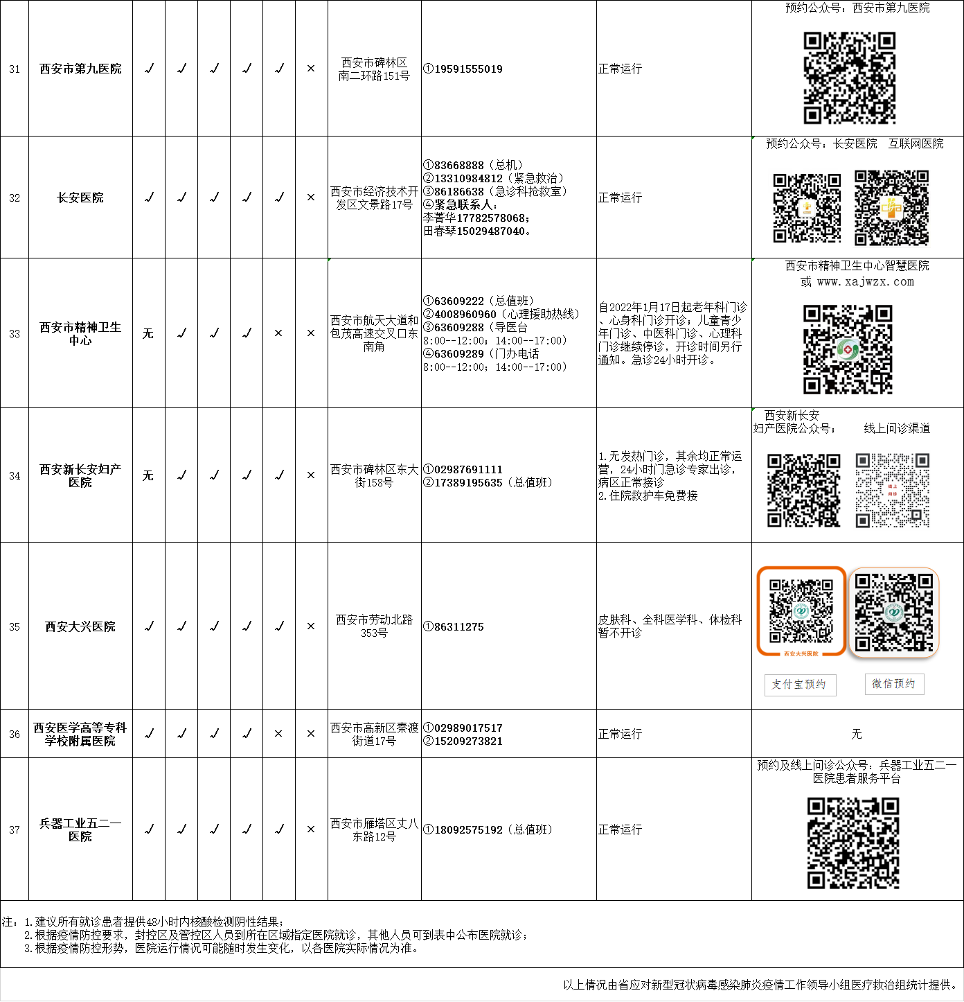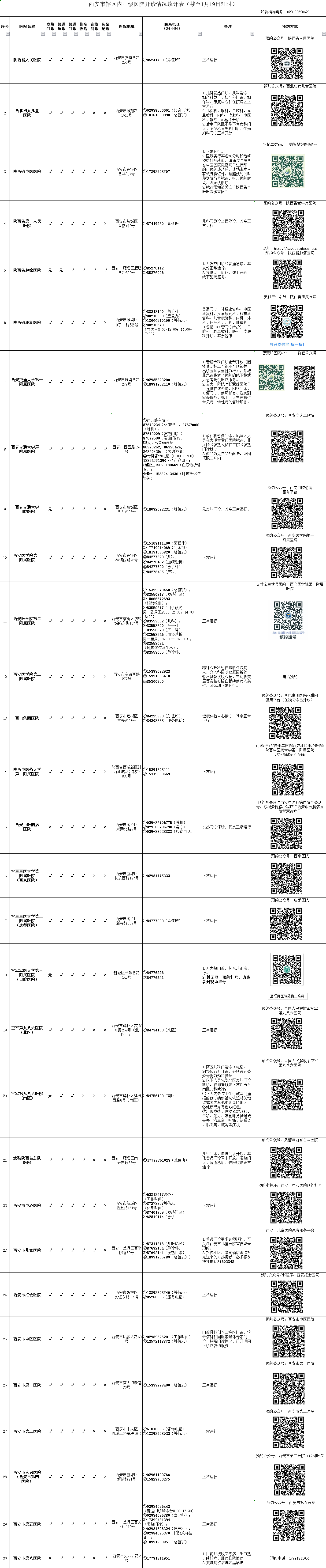 最新!西安市轄區(qū)內(nèi)三級(jí)醫(yī)院開(kāi)診情況統(tǒng)計(jì)表(截至1月19日21時(shí))