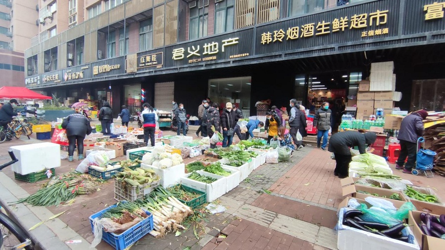 走出超市,漫步街邊,沿街陸續(xù)開業(yè)的小商鋪,同樣展現(xiàn)著這個城市久違的活力。在楓葉廣場2期小區(qū)西南門,正在營業(yè)的蔬菜店、水果店生意很是不錯,新鮮的茄子、青筍、白菜用紙箱裝著,被整整齊齊地?cái)[在沿街人行道上,不少市民正在選購心儀的菜品。
