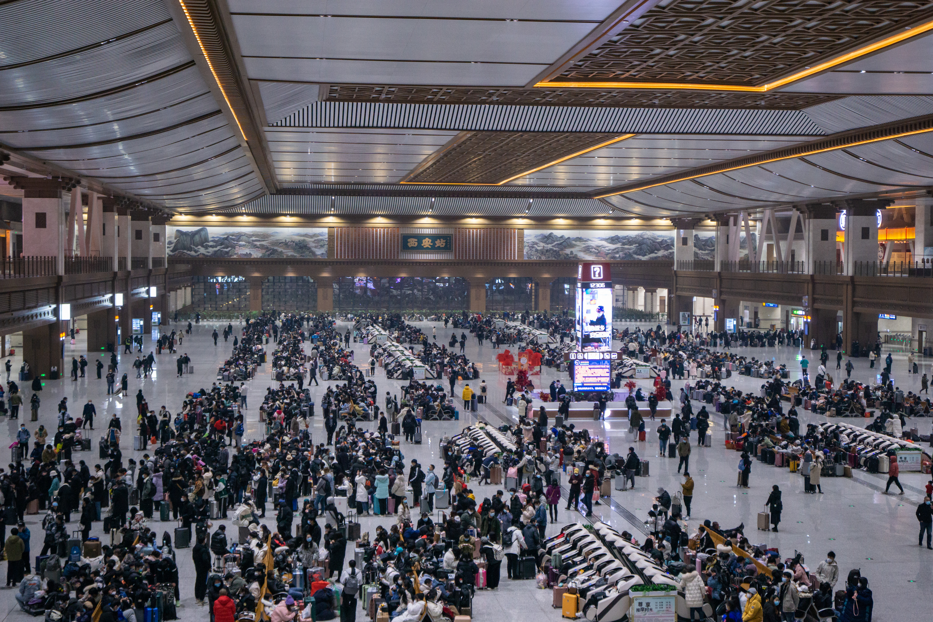 高鐵西安北站,看著候車大廳不斷增加的旅客,中國鐵路西安局集團有限公司工作人員李子宇和同事們頗為感慨:“前一陣候車大廳顯得冷清,這下春運的感覺有了,過年的氛圍也有了,我們也忙起來了!”