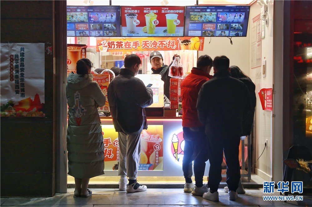 1月25日,在西安市未央?yún)^(qū)一家飲品外,市民正在排隊(duì)購(gòu)買(mǎi)。新華網(wǎng) 王智超 攝