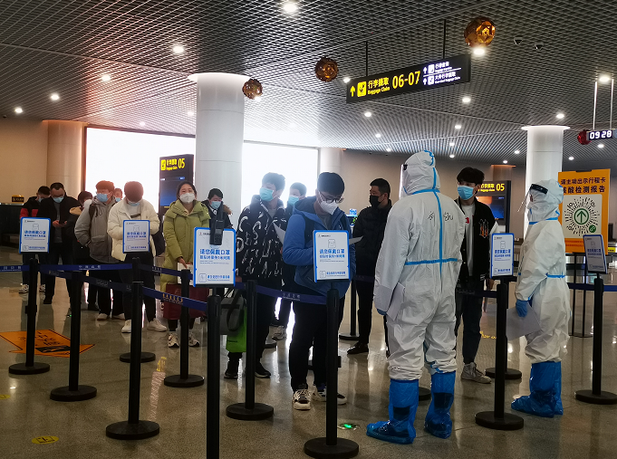 “針對可能出現(xiàn)的客流高峰,我們要求采取相應的限流措施,航站樓實施出、入人員分流,入口不出、出口不入。當發(fā)生航班大面積延誤時,我們會增加服務和引導人員,采取電子改簽、集中改簽等多種措施,防止旅客大量聚集。”榆林榆陽機場防控辦工作人員呂靜說。