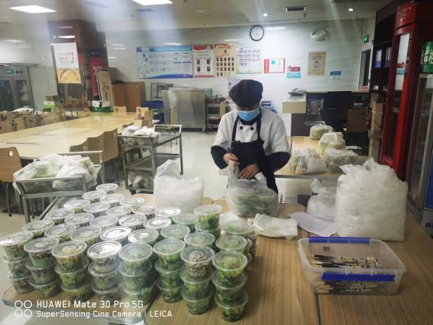 同時(shí),醫(yī)院還成立志愿者送餐服務(wù)隊(duì),為住院患者及陪人提供送餐服務(wù)。餐廳再次完善了送餐流程,明確了餐箱消毒及工作人員防護(hù)要求,讓住院患者享受營(yíng)養(yǎng)健康又熱乎乎的飯菜。隊(duì)員中有行政后勤人員、醫(yī)生、護(hù)士,他們與餐廳密切合作,確保準(zhǔn)時(shí)送達(dá)、數(shù)量準(zhǔn)確,為了保證飯菜的溫度,他們加快速度,提高效率,送餐隊(duì)員們練就了熟練的推車技術(shù),各個(gè)都成了“推車高手”,每一餐一千多份餐食移交完畢,隊(duì)員們笑著說(shuō)“腰都快直不起來(lái)了。”但他們沒(méi)有一個(gè)人叫苦叫累,都說(shuō)“看到患者吃著熱乎的飯菜,我們覺(jué)得每天都是值得的!能為患者服務(wù)好,便是我們對(duì)西安抗疫做的最大貢獻(xiàn)。”