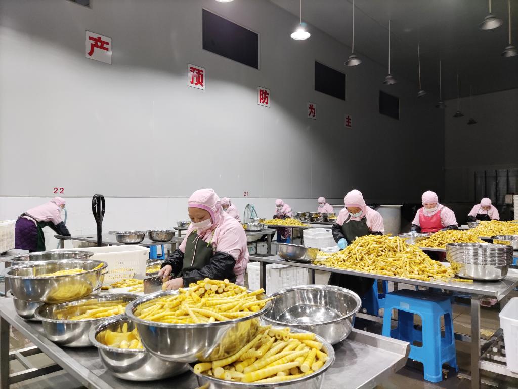 在碗廠鎮(zhèn)農(nóng)特產(chǎn)品產(chǎn)業(yè)園,竹筍加工廠多條生產(chǎn)線有序運(yùn)轉(zhuǎn)。