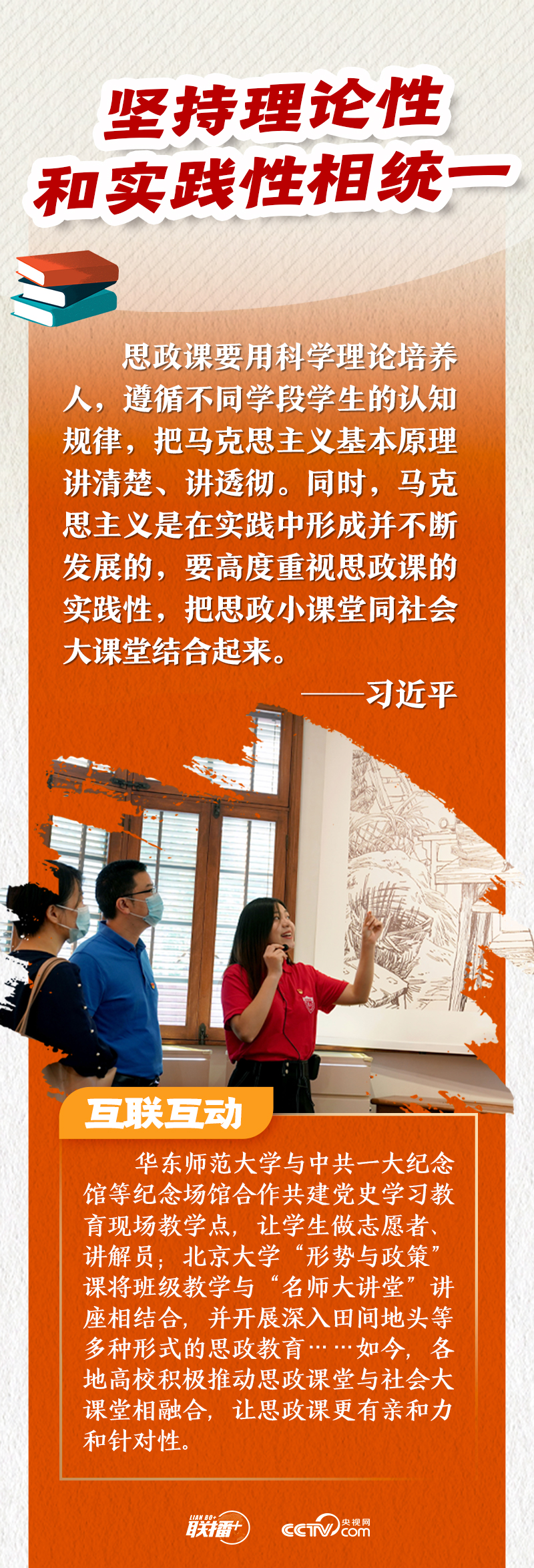 如今,思政課不再是枯燥的理論說教,而是結(jié)合了歷史故事、新時代精神、地域特色等元素的“思政大餐”。央視網(wǎng)《聯(lián)播+》特推出海報,與您一同了解思政課的變化。