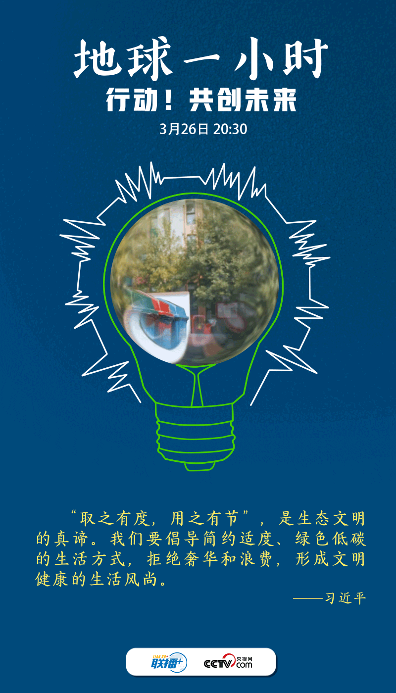 保護(hù)地球不止一小時。央視網(wǎng)《聯(lián)播+》梳理總書記相關(guān)論述,邀您一起“節(jié)”盡所“能”,爭當(dāng)?shù)厍蚣覉@呵護(hù)者、綠色生活理念傳播者、低碳生活方式踐行者,為建設(shè)綠色新家園多作貢獻(xiàn)。