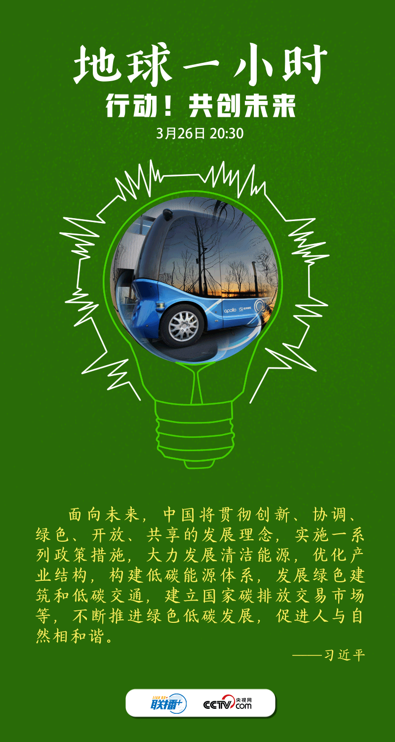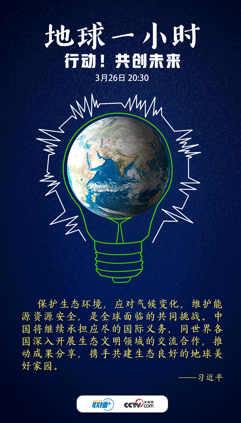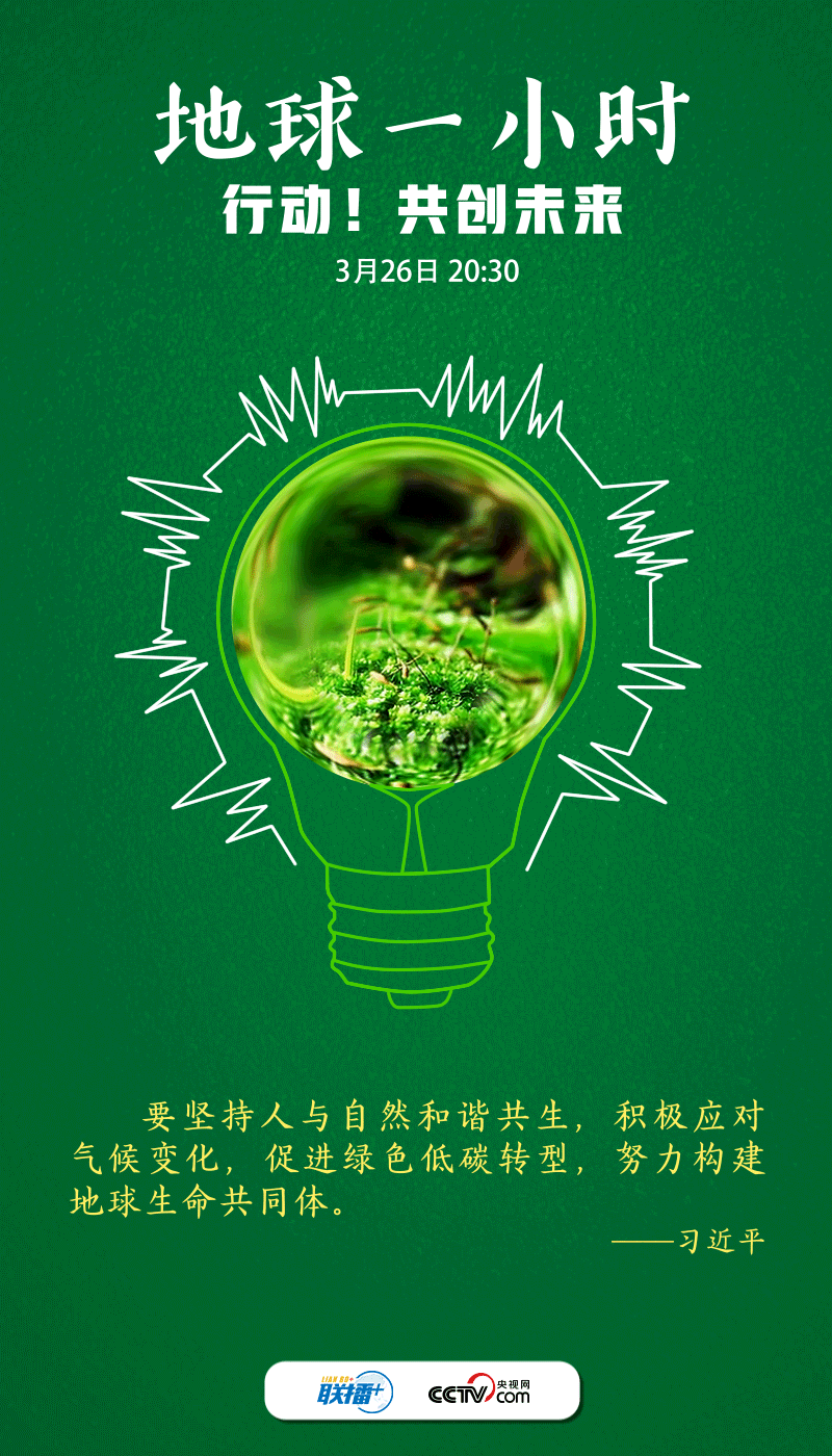 聯(lián)播+2022年3月26日是“地球一小時”活動日。今年的主題是“行動!共創(chuàng)未來”,呼吁世界各國在2030年之前,就自然保護(hù)、氣候變化和可持續(xù)發(fā)展等達(dá)成全球合作,讓自然向好,讓人類受益。