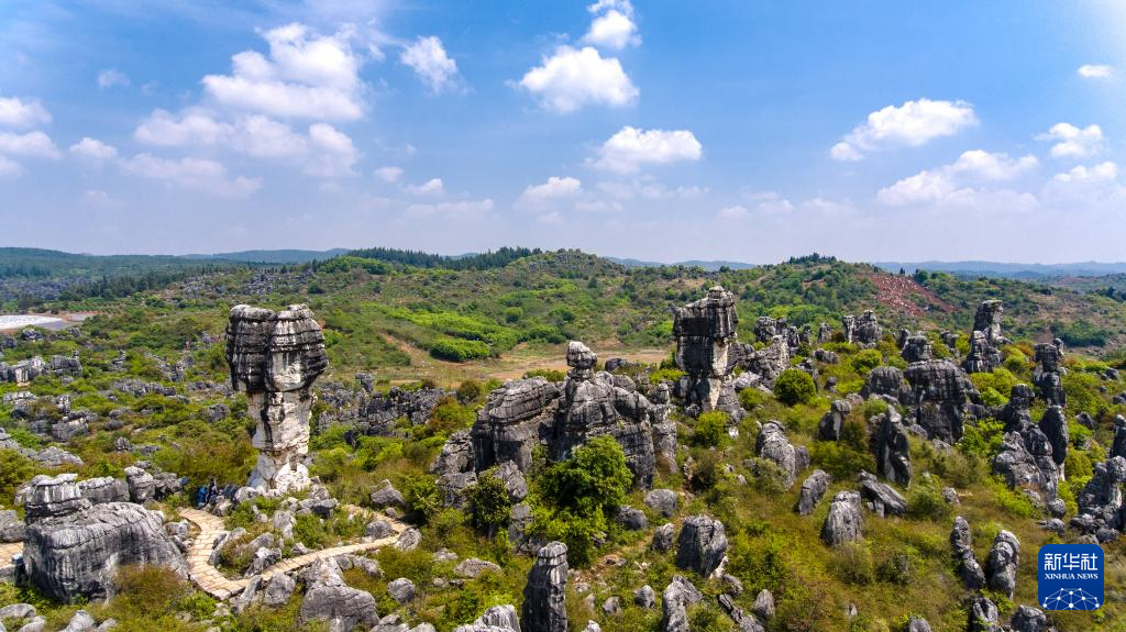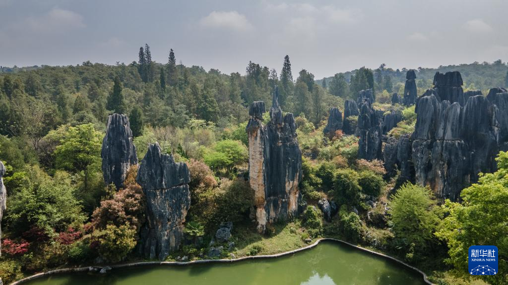 這是4月10日拍攝的石林景觀(無人機(jī)照片)。新華社記者 王冠森 攝
