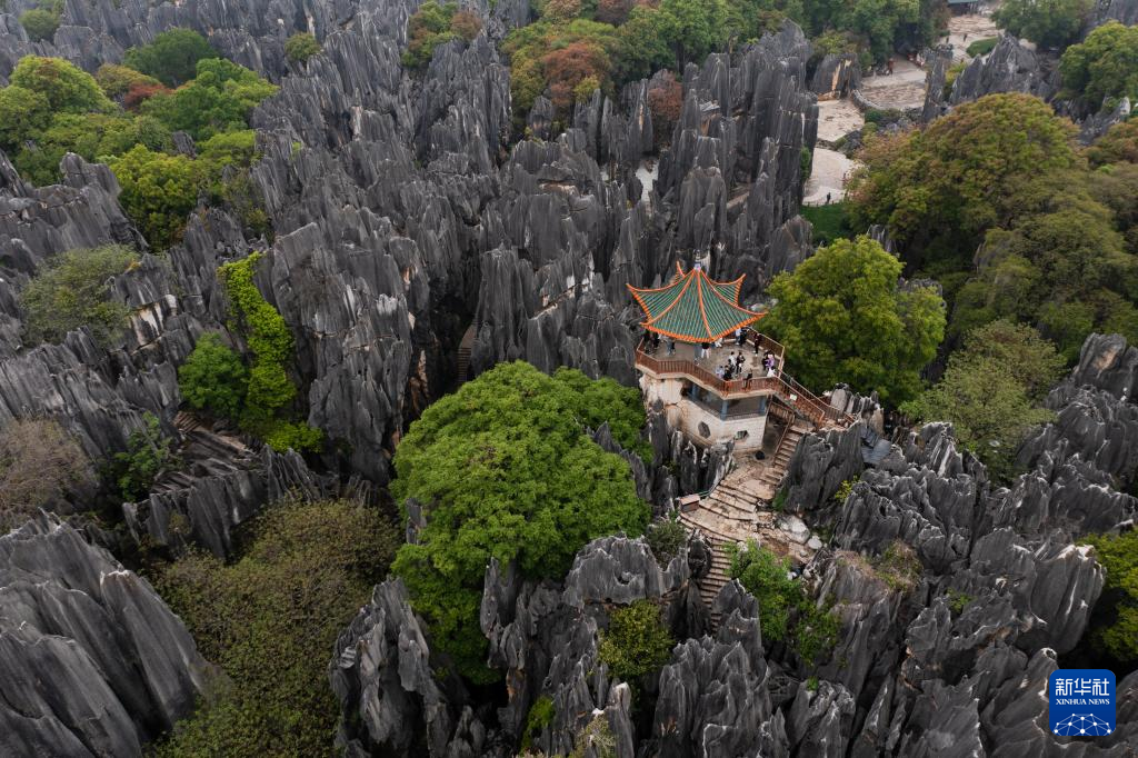 這是4月10日拍攝的大石林望峰亭(無人機(jī)照片)。新華社記者 王冠森 攝