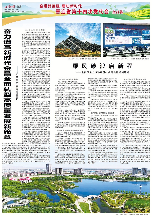 奮力譜寫新時代金昌全面轉(zhuǎn)型高質(zhì)量發(fā)展新篇章——訪金昌市委書記王鈞