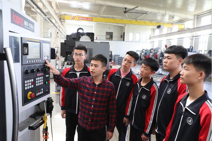 2021年5月8日,河北省河間市職業(yè)教育中心教師在河間市一家企業(yè)為學(xué)生講解機(jī)床實(shí)操。新華社記者 駱學(xué)峰 攝
