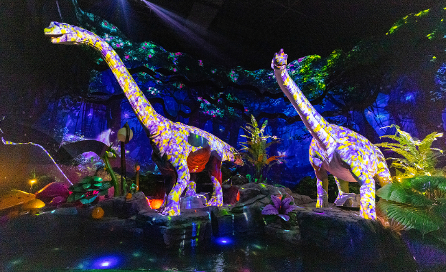 在大型4D Ride項(xiàng)目《恐龍危機(jī)》,游客穿過昏暗低溫的實(shí)驗(yàn)室,進(jìn)入實(shí)景搭建的城市街道,化身“超級(jí)英雄”與復(fù)活的恐龍群“激戰(zhàn)”。逼真的視聽體驗(yàn)、精彩的打斗場(chǎng)面讓人身臨其境,成功拯救城市的成就感更讓大小朋友們回味十足。