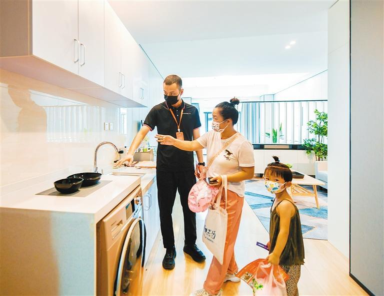 來(lái)自甘肅的潘先生,家里有個(gè)24歲的女兒,剛剛工作才兩年,一直都是租房住,安全問(wèn)題是他最擔(dān)心的。聽說(shuō)這里的保障性租賃住房是政府項(xiàng)目,跟市面上的租賃住房相比,這里的房租更低,質(zhì)量上也更有保障,潘先生很感興趣,在看過(guò)樣板間后,讓女兒盡快拎包入住的想法更加強(qiáng)烈。“這里房間干凈整潔、安全性好,全天都有保安值守,孩子住這我心里很踏實(shí)。”潘先生說(shuō)。