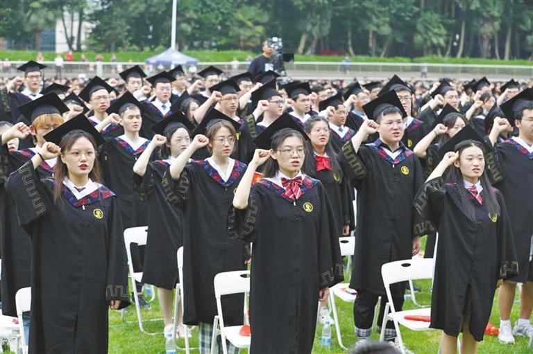 西安交通大學(xué)畢業(yè)典禮上,同學(xué)們莊嚴(yán)宣誓,表達了把青春奮斗融入黨和人民事業(yè)的堅定決心。西安交通大學(xué)供圖