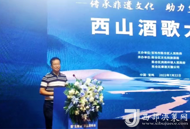 區(qū)委常委、宣傳部長徐宏剛為大賽致辭,他指出,鳳閣嶺鎮(zhèn)文化底蘊深厚,源遠流長,“西山酒歌”享譽陜甘兩省,具有鮮明的地域特色,是最具原生態(tài)的民間群眾自娛自樂的一種說唱藝術,本次大賽既是一次對西山酒歌的展示,也是對我區(qū)公共文化服務高質(zhì)量發(fā)展的有益探索和創(chuàng)新。希望各參賽隊伍在大賽中大展才藝、在大賽中豐富生活、在大賽中營造和諧,著力提升西山酒歌知名度,讓陳倉非物質(zhì)文化在新時代綻放新光彩煥發(fā)新活力。