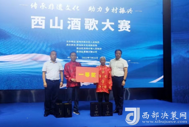 西部決策網(wǎng)訊(劉恒 通訊員 王榮)為傳承陜西省非物質(zhì)文化遺產(chǎn)“西山酒歌”文化,積極探索鄉(xiāng)村特色文化產(chǎn)業(yè)助推鄉(xiāng)村振興,進一步豐富人民群眾文化生活,展示廣大人民群眾的良好精神風貌。7月22日由寶雞市陳倉區(qū)人民政府主辦,區(qū)文旅局、鳳閣嶺鎮(zhèn)人民政府承辦的“西山酒歌”大賽在寶雞奧斯頓酒店圓滿落下帷幕。鳳閣嶺鎮(zhèn)6個參賽隊40余名選手參加了此次比賽。區(qū)政協(xié)主席茍曉明,區(qū)委常委、常務副區(qū)長屈亞奇,區(qū)委常委、人武部政委王斌,區(qū)委常委、宣傳部長徐宏剛,區(qū)人大常委會副主任尉曉平,寶雞市西山建委副主任齊文強,市陸港新城紀工委書記李巖,區(qū)法院黨組書記、院長田廣玉,區(qū)文化和旅游局局長齊智雄,鳳閣嶺鎮(zhèn)黨委書記張小衛(wèi),鎮(zhèn)長牟峰濤,區(qū)級各部門、各鎮(zhèn)街有關領導參加活動。