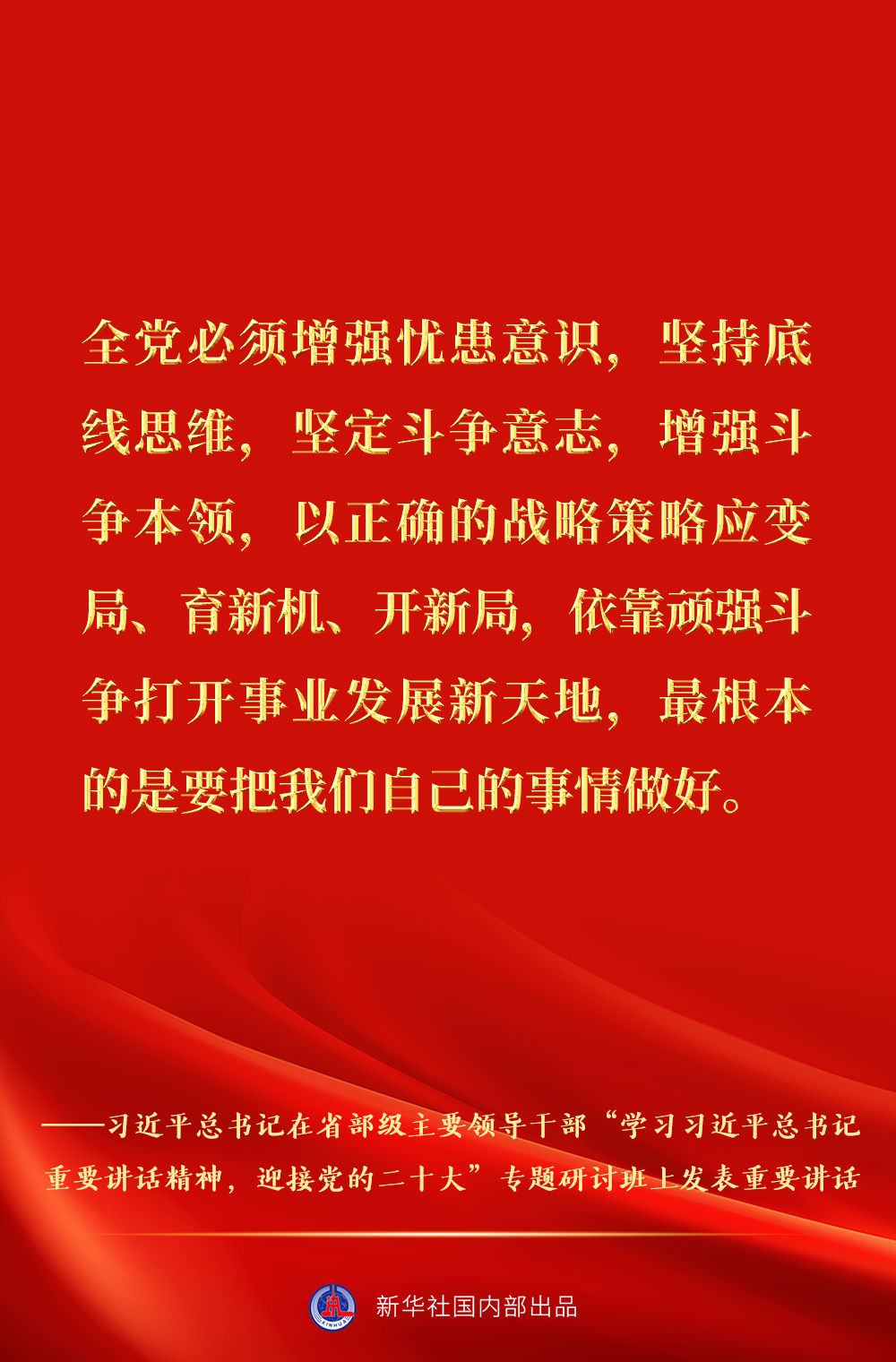 省部級(jí)主要領(lǐng)導(dǎo)干部“學(xué)習(xí)習(xí)近平總書(shū)記重要講話精神,迎接黨的二十大”專題研討班26日至27日在京舉行。中共中央總書(shū)記、國(guó)家主席、中央軍委主席習(xí)近平發(fā)表重要講話。一起來(lái)看金句速覽。