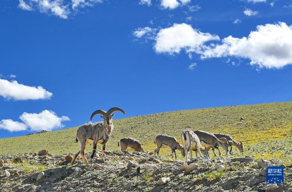 岡仁波齊峰附近的巖羊(8月2日攝)。新華社記者 張汝鋒 攝