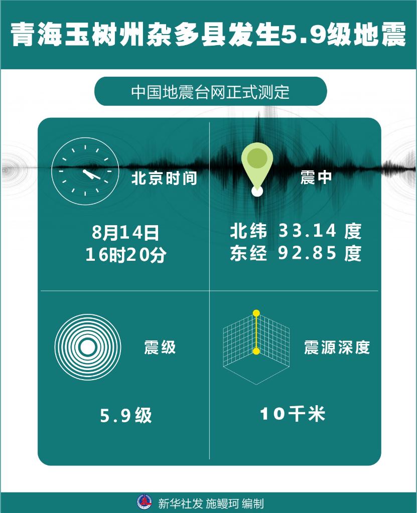 記者從青海省地震局獲悉,8月14日16時20分,青海省玉樹藏族自治州雜多縣發(fā)生5.9級地震,震源深度10千米,震中位于北緯33.14度、東經(jīng)92.85度。目前,暫無人員傷亡消息。