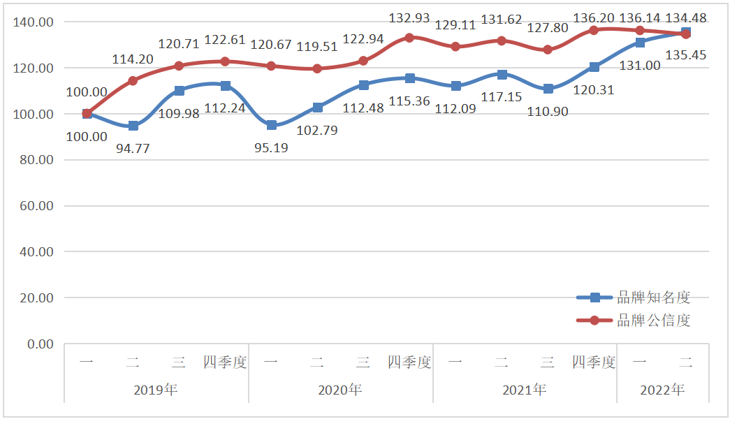 西鳳酒品牌傳播力指數(shù)2022年二季度運(yùn)行監(jiān)測(cè)顯示,西鳳酒品牌傳播力略有提升,達(dá)到134.96點(diǎn)。通過節(jié)日宣傳、交流拜訪、基酒項(xiàng)目建設(shè)等活動(dòng),西鳳酒品牌知名度和品牌公信度分別達(dá)到135.45點(diǎn)和134.48點(diǎn)。