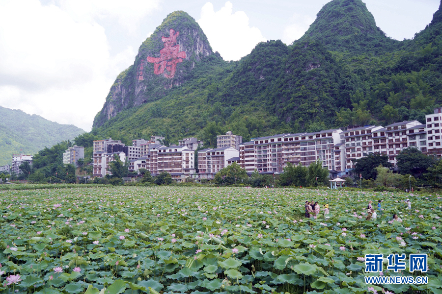 游客在巴馬瑤族自治縣甲篆鎮(zhèn)平安村巴盤屯欣賞荷花。新華網 谷雨 攝