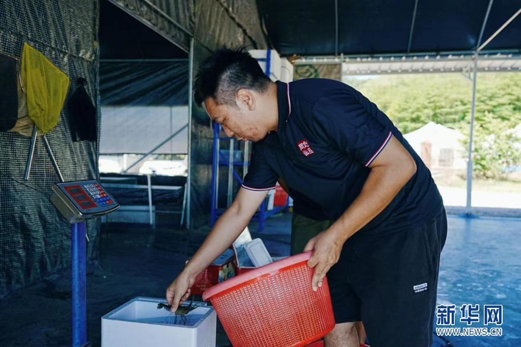 張銘華將小龍蝦稱(chēng)重。新華網(wǎng)發(fā) (張羲輪 攝)
