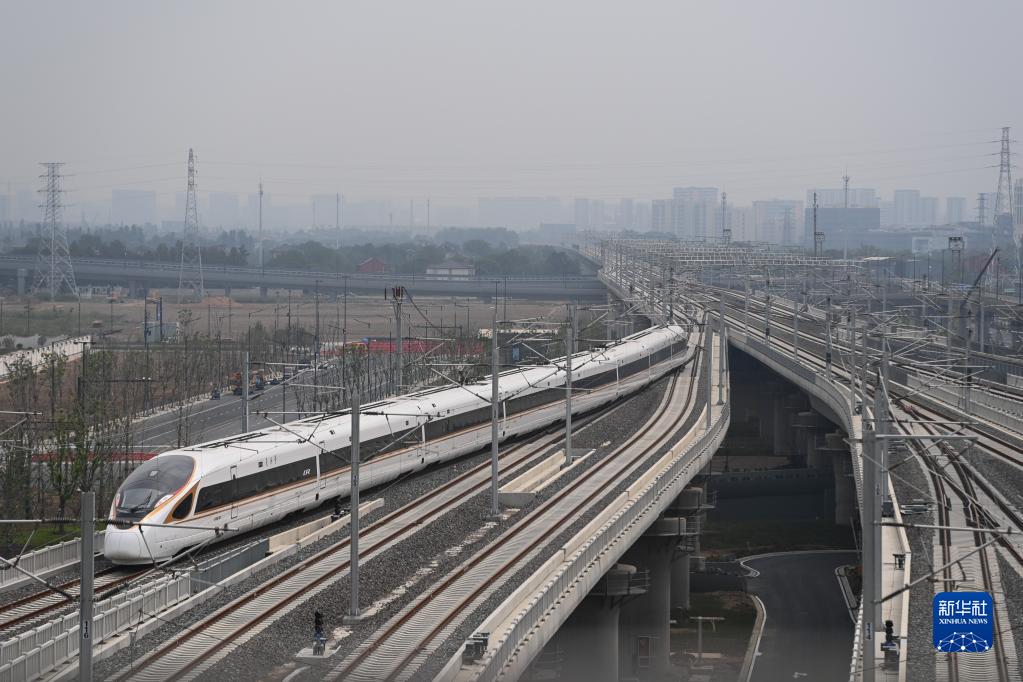 2022年9月22日,合杭高鐵湖州至杭州段首趟列車從杭州西站駛出。新華社記者 黃宗治 攝