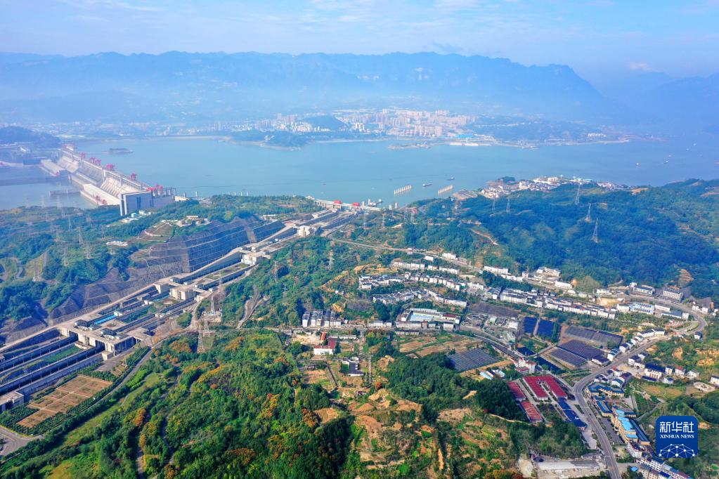 這是位于三峽工程大壩壩頭北岸的湖北省宜昌市夷陵區(qū)太平溪鎮(zhèn)許家沖村(10月16日攝,無人機照片)。新華社發(fā)(張國榮 攝)