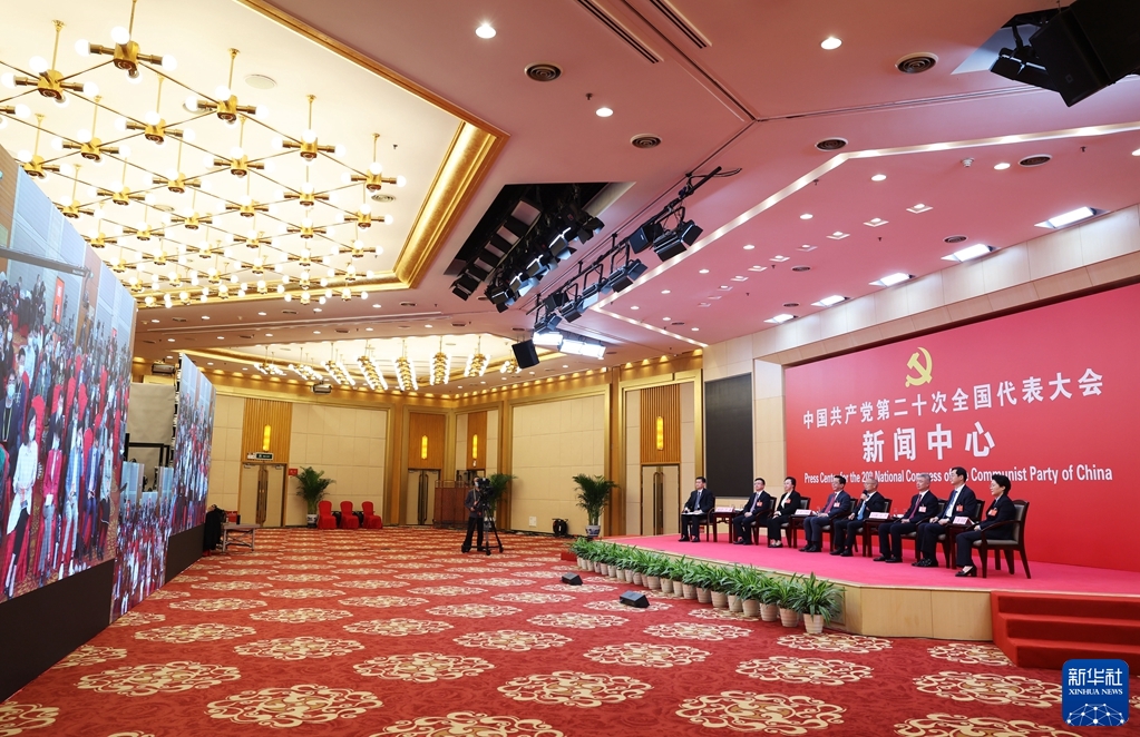 10月19日,中國共產(chǎn)黨第二十次全國代表大會新聞中心舉行集體采訪。重慶、四川、貴州、云南、西藏、陜西、甘肅代表團(tuán)新聞發(fā)言人出席,介紹代表團(tuán)學(xué)習(xí)討論二十大報(bào)告情況,并回答記者提問。新華社記者 陳建力 攝