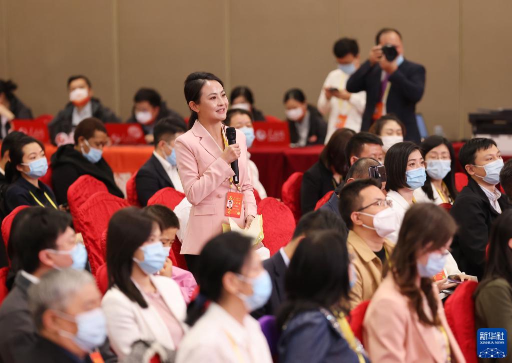 這是記者在分會場提問。新華社記者 殷剛 攝