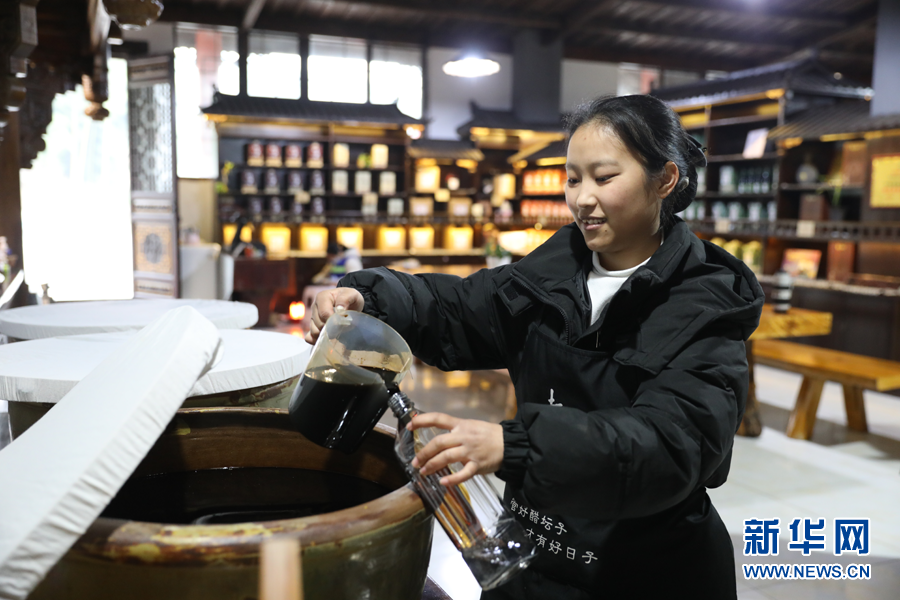工作人員為顧客打散裝曬醋。新華網(wǎng) 周遠(yuǎn)鋼 攝