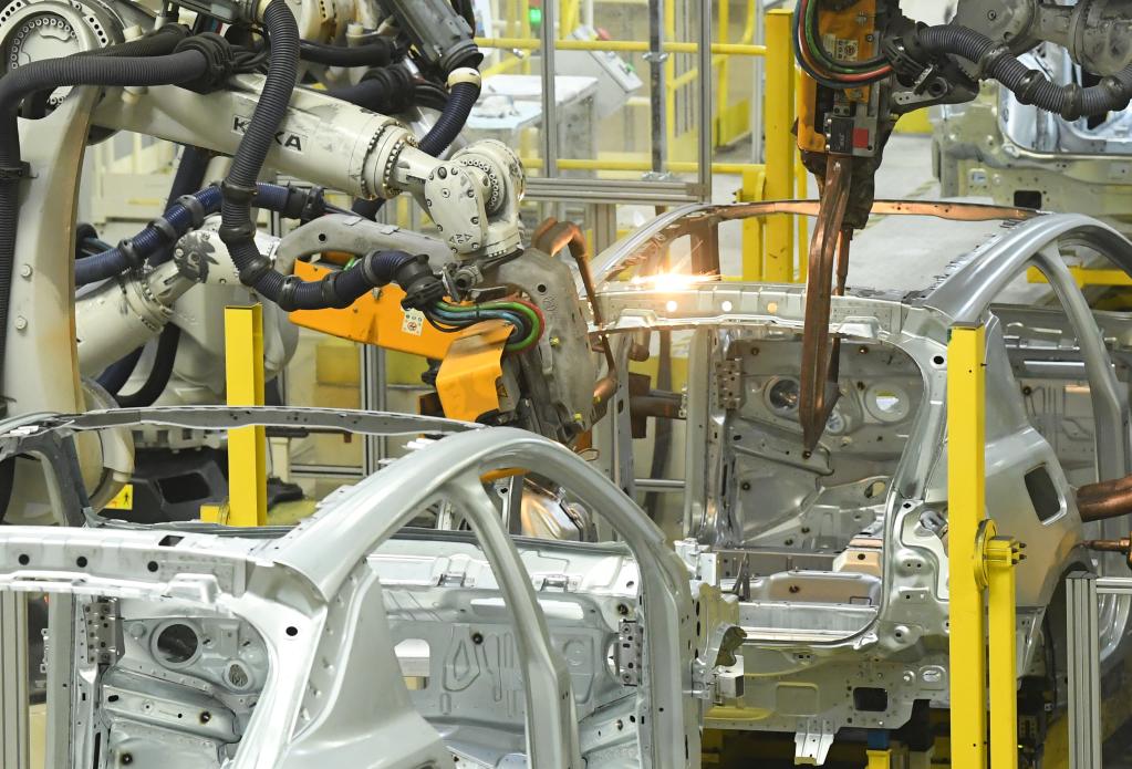 4月11日,智能機(jī)器人在領(lǐng)克汽車寧波余姚工廠焊裝車間工作。新華社記者翁忻旸 攝