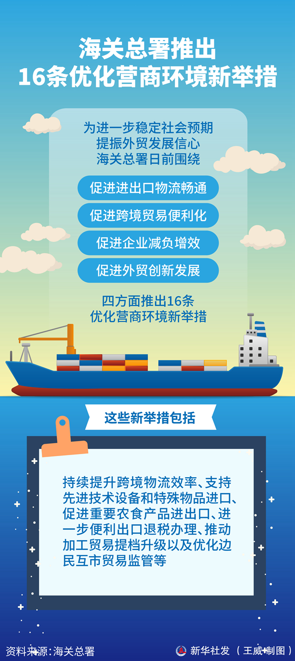 在促進(jìn)進(jìn)出口物流暢通方面,有擴(kuò)大“船邊直提”“抵港直裝”“聯(lián)動(dòng)接卸”等便利化措施試點(diǎn)范圍,保障屬地查檢鮮活易腐商品綠色通道暢通運(yùn)行,優(yōu)化高新技術(shù)設(shè)備監(jiān)管查驗(yàn)流程等。在促進(jìn)跨境貿(mào)易便利化方面,有深入推進(jìn)國(guó)際貿(mào)易“單一窗口”建設(shè),拓展更多便利功能和服務(wù);在具備條件的口岸開(kāi)展“智慧口岸”建設(shè)試點(diǎn)等。在促進(jìn)企業(yè)減負(fù)增效方面,包括進(jìn)一步擴(kuò)大主動(dòng)披露政策適用范圍,為企業(yè)提供容錯(cuò)糾錯(cuò)、守法便利通道;繼續(xù)擴(kuò)大海關(guān)“經(jīng)認(rèn)證的經(jīng)營(yíng)者”(AEO)互認(rèn)范圍,推動(dòng)AEO企業(yè)在境內(nèi)外享受通關(guān)便利等。在促進(jìn)外貿(mào)創(chuàng)新發(fā)展方面,包括有序開(kāi)展跨境電商海關(guān)監(jiān)管綜合改革;拓展保稅維修業(yè)務(wù)范圍等。